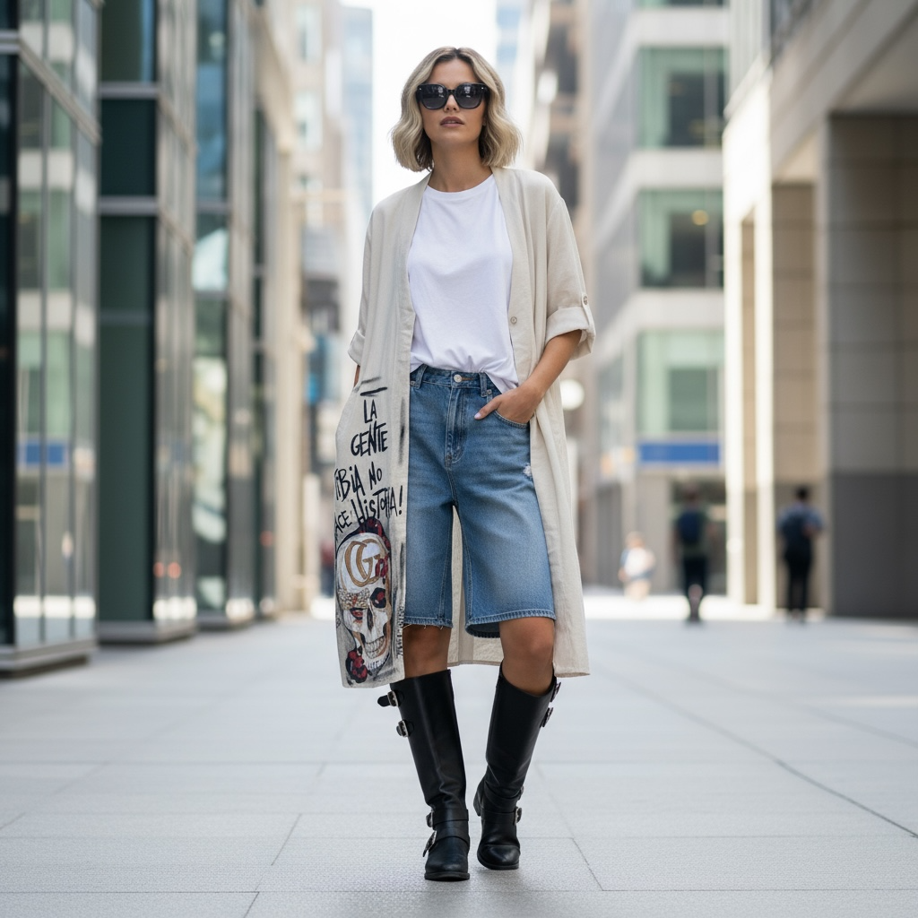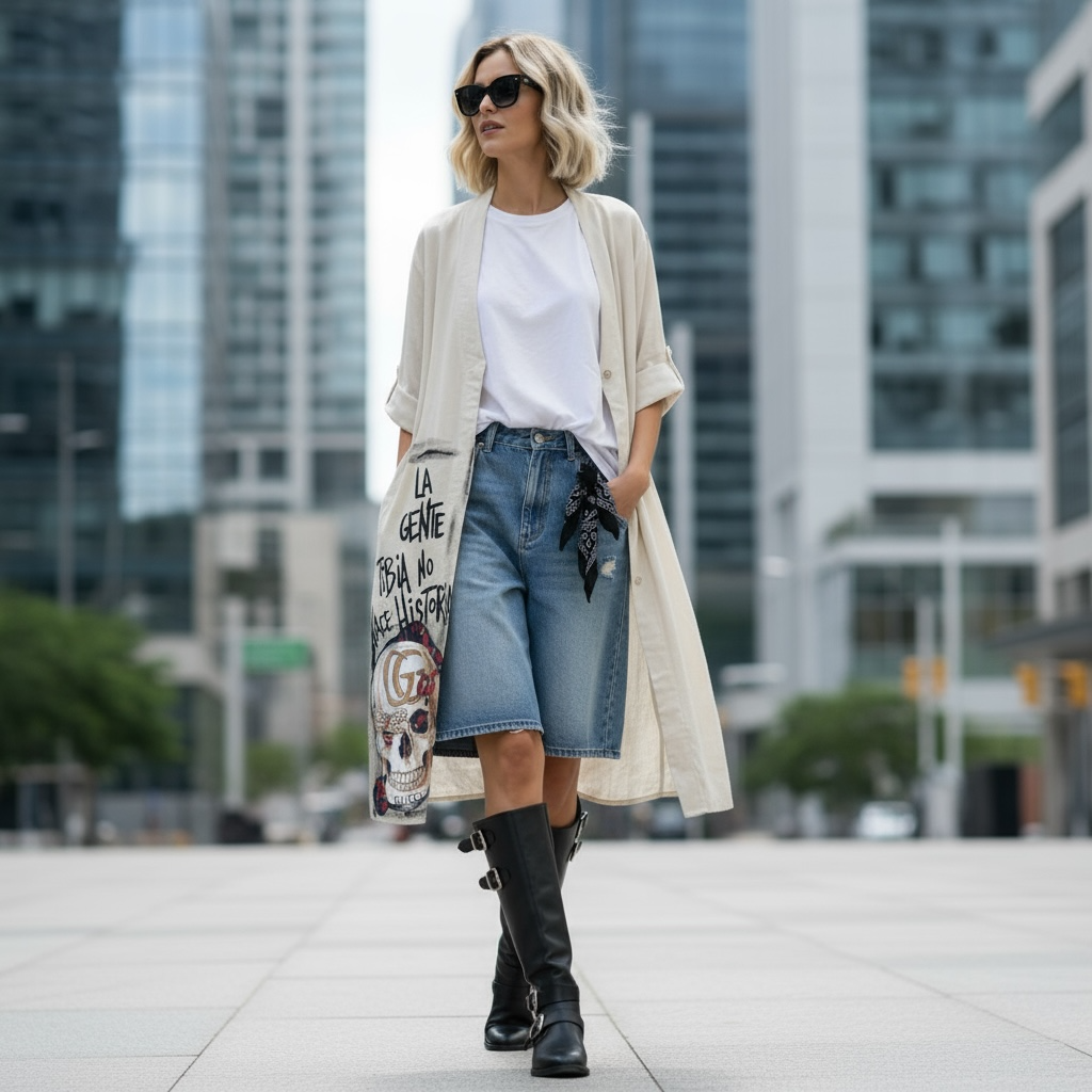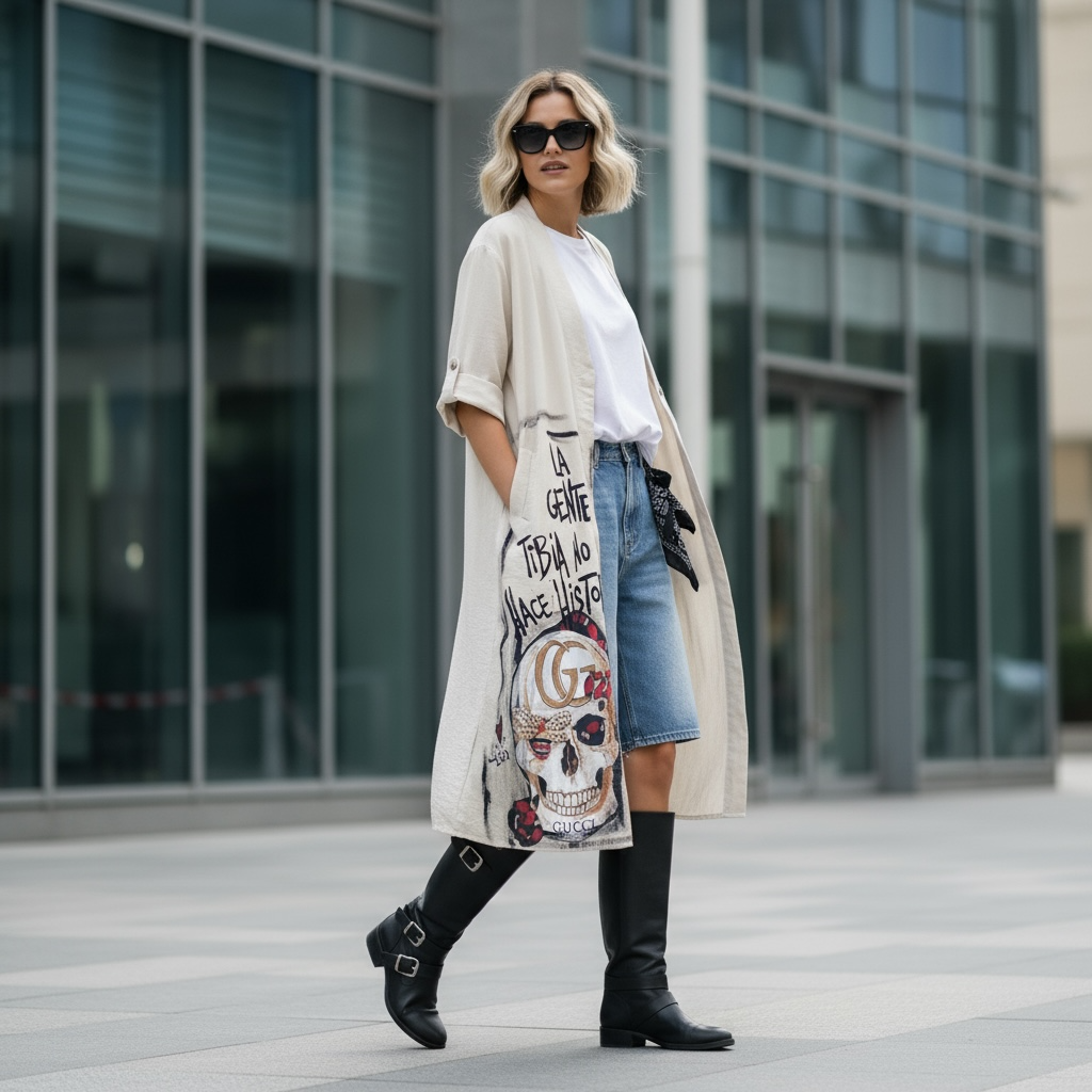 Su corte amplio y fluido permite usarla abierta como abrigo liviano o cerrada como vestido. Una pieza para mujeres que eligen expresarse con estilo y actitud.