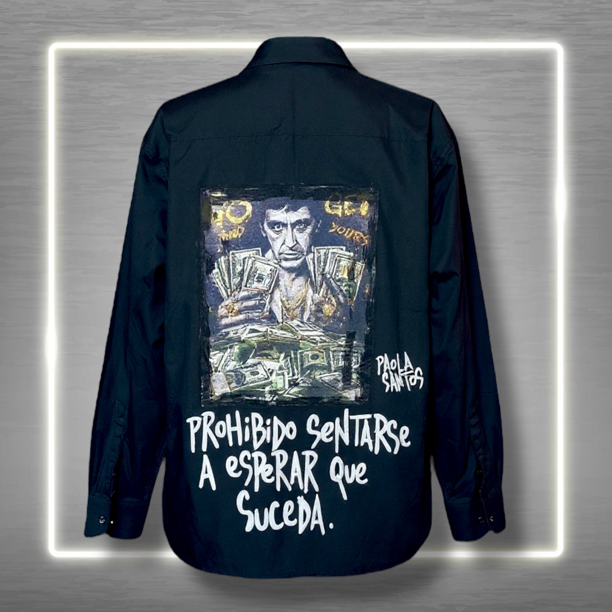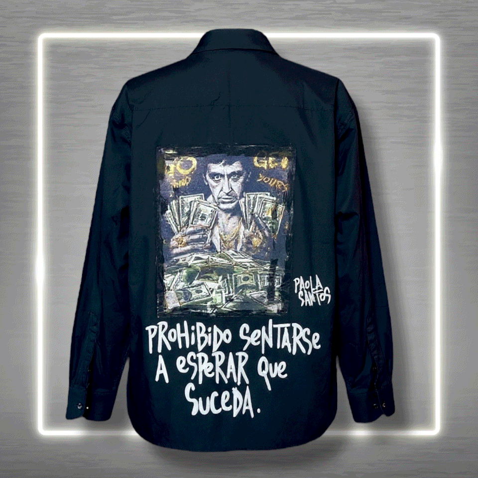Camisa negra “Prohibido sentarse a esperar que suceda” – Paola Santos