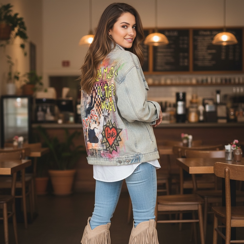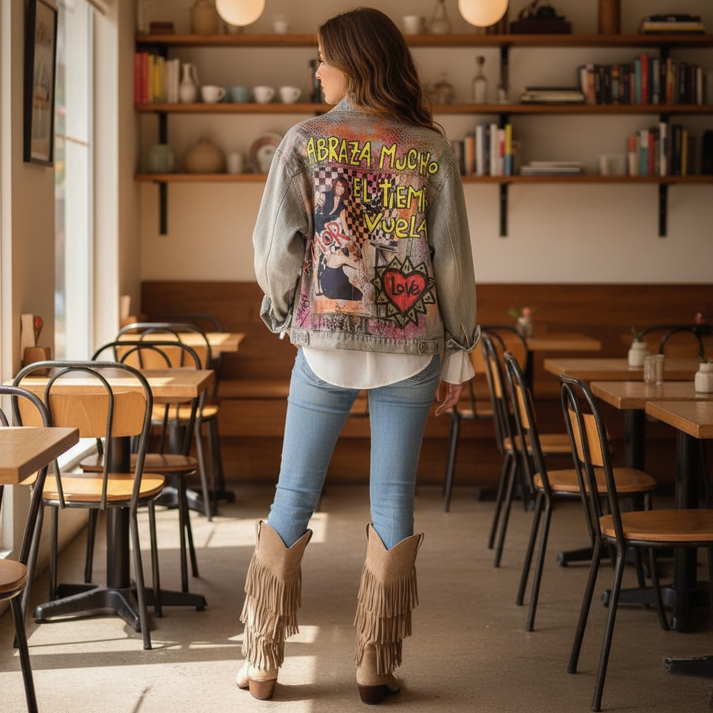 Intervención: Pintura textil acrílica y detalles art pop pintados a mano