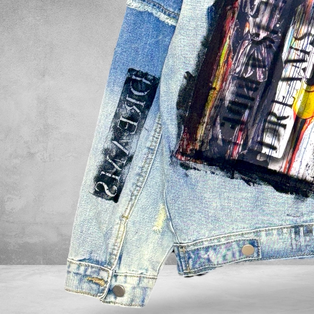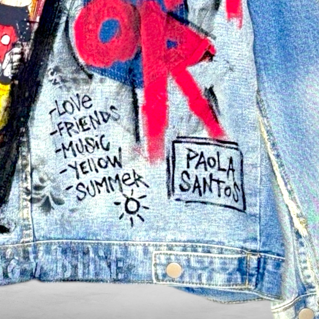 Campera de jean unisex, oversize y 100% algodón, intervenida a mano con un estilo urbano y vibrante.