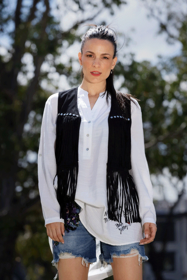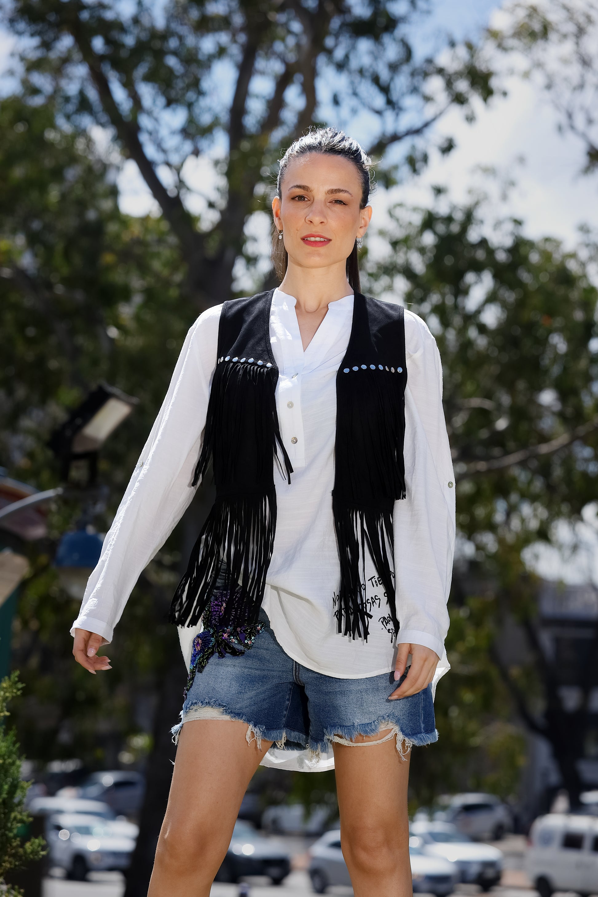 Su caída fluida y el movimiento de los flecos le dan ese aire libre y urbano que define a Paola Santos. Perfecto para usar sobre camisas, vestidos o remeras oversize.