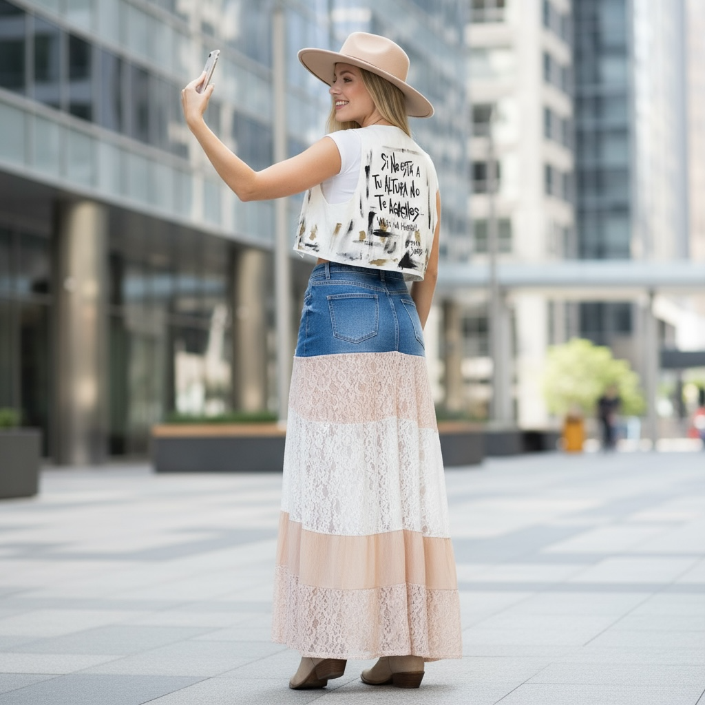 Chaleco blanco de lino con intervención artística y frase pintada a mano: