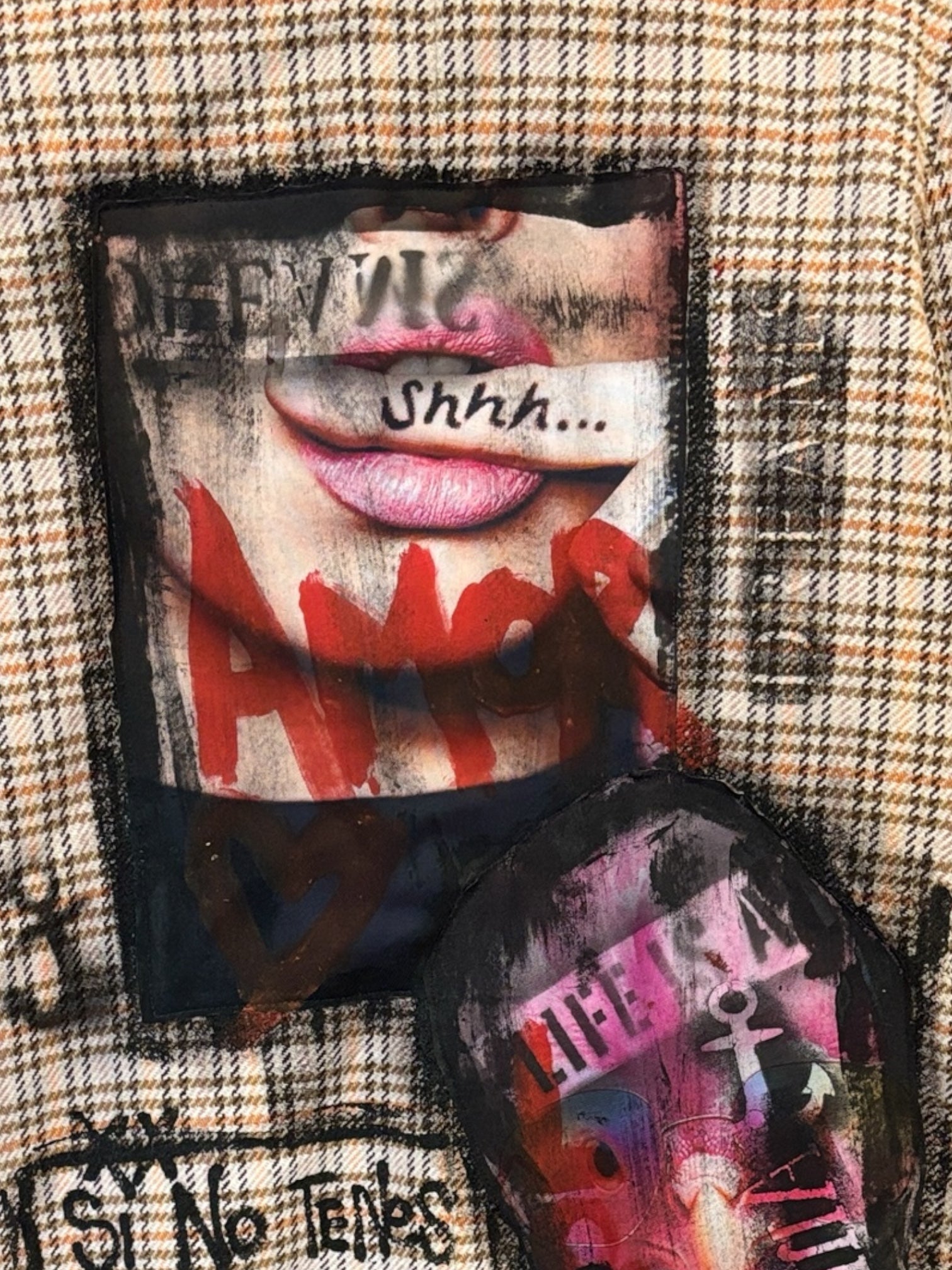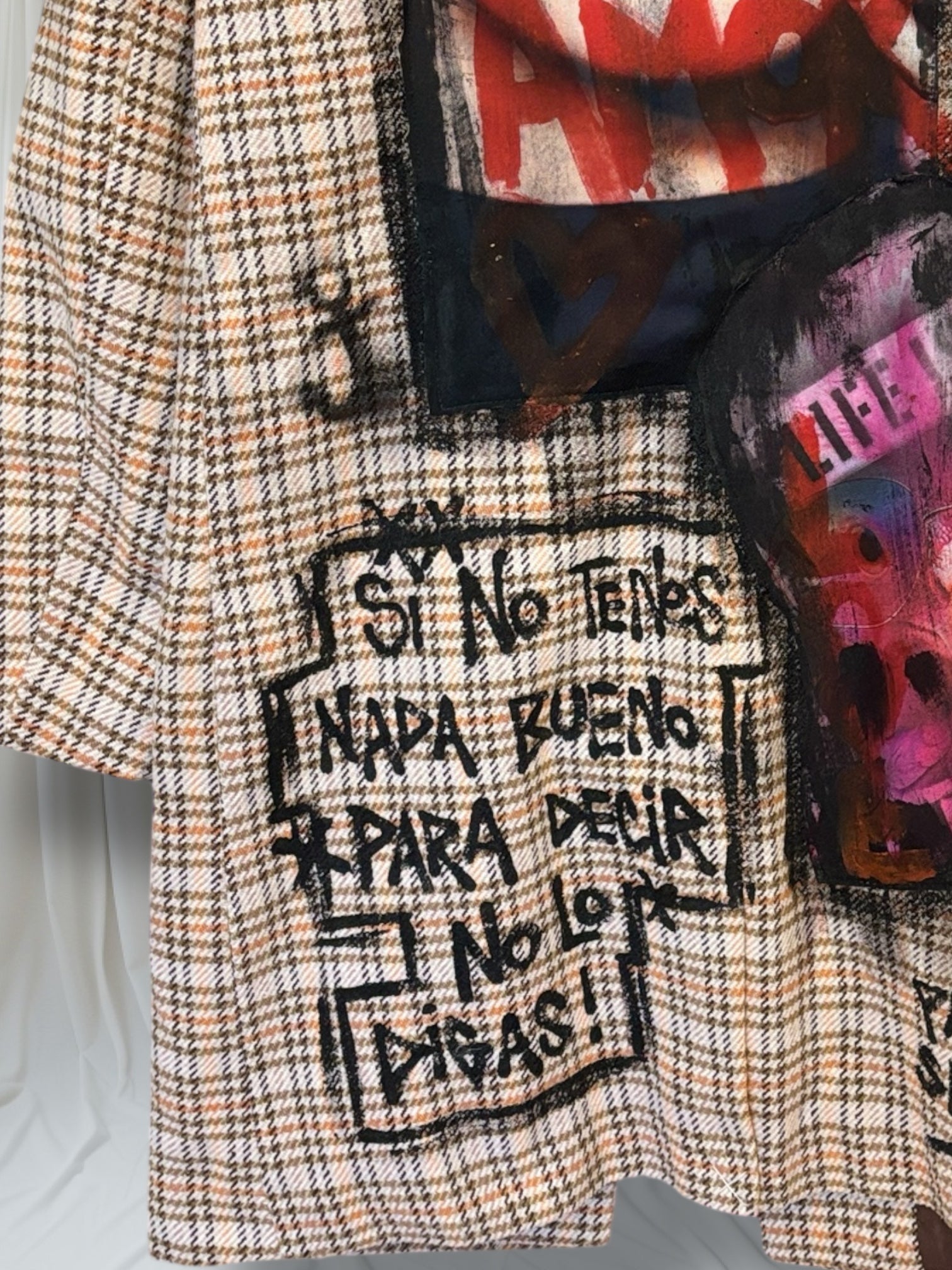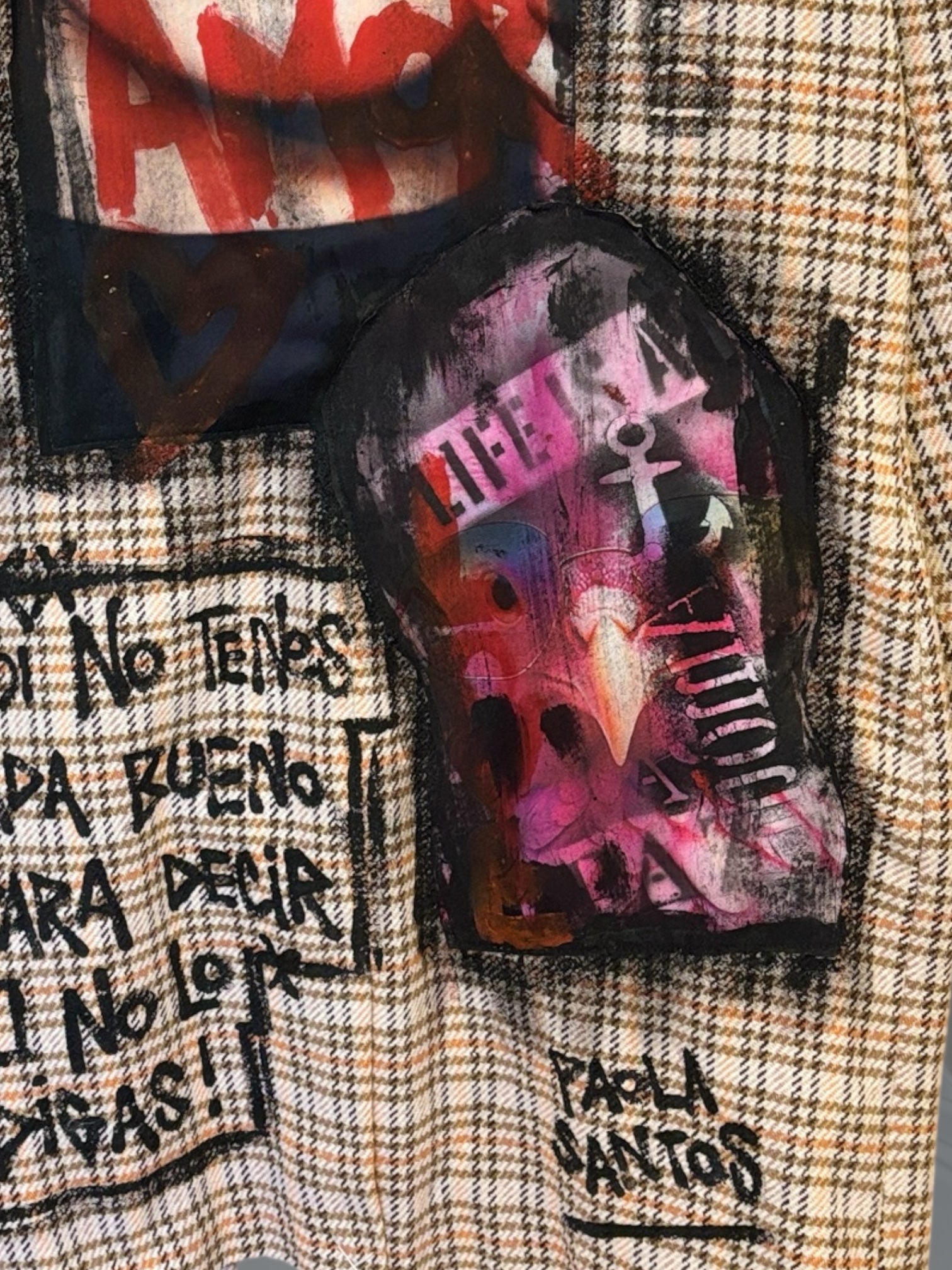 Un clásico a cuadros intervenidos a mano con arte, frases y detalles que cuentan una historia.