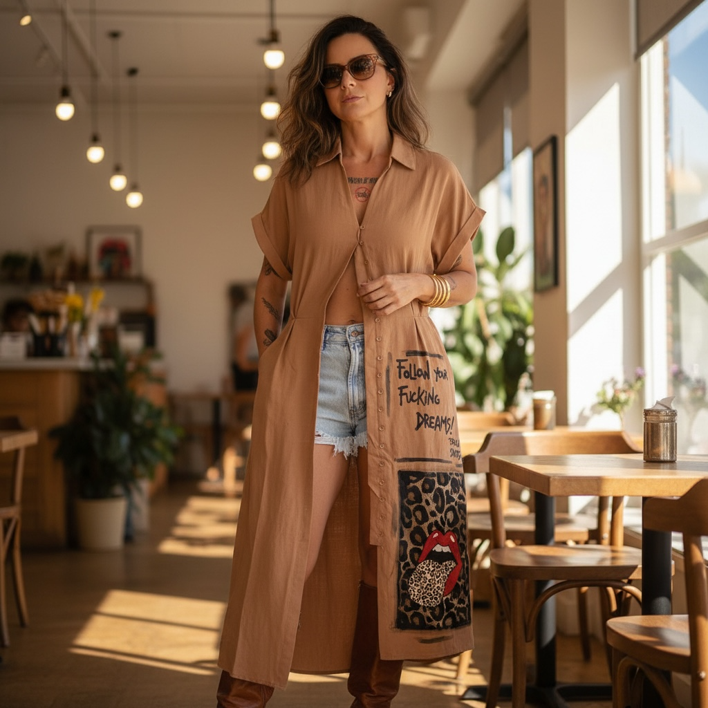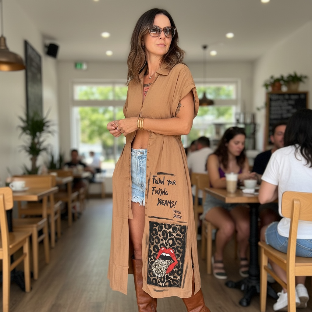 Sobrecamisa Larga Intervenida "Follow your fucking dreams"