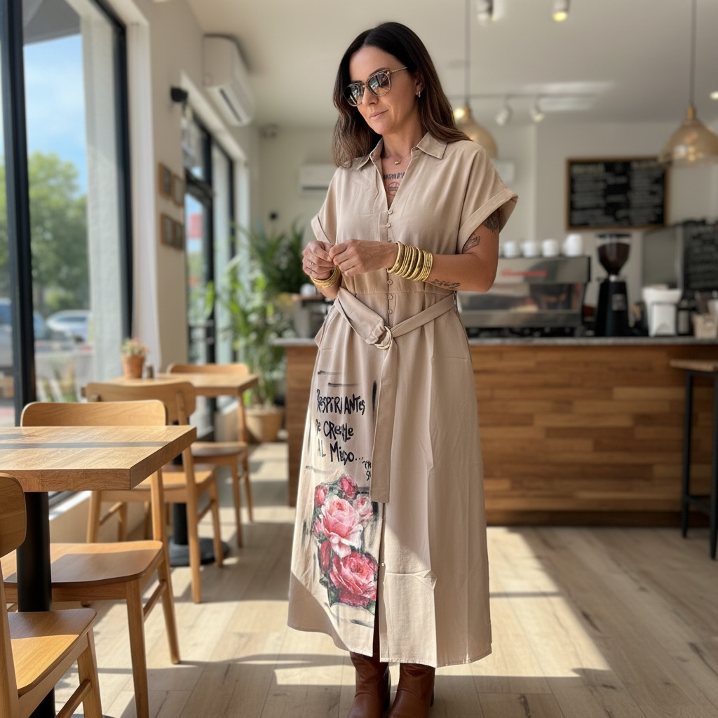 Versatilidad: Se usa abierta o cerrada, como vestido, kimono o capa urbana.