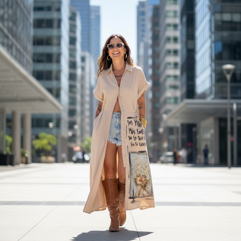Versatilidad: Se usa abierta o cerrada, como vestido, kimono o capa urbana.