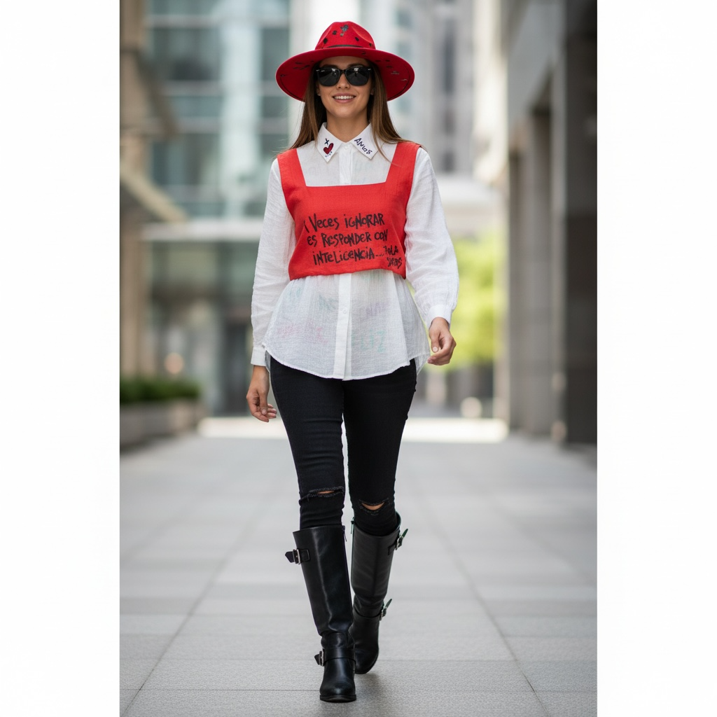 Usos: Para usar solo o sobre camisas, remeras, tops y vestidos