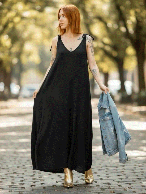 Un básico con actitud. El Vestido Desert en negro es pura libertad: fluido, cómodo y con una caÃda perfecta. Tiene breteles finos ajustables y bolsillos invisibles que lo hacen tan práctico como versátil. Ideal para acompañarte todo el año —con sandalias, botas o zapatillas, siempre funciona.